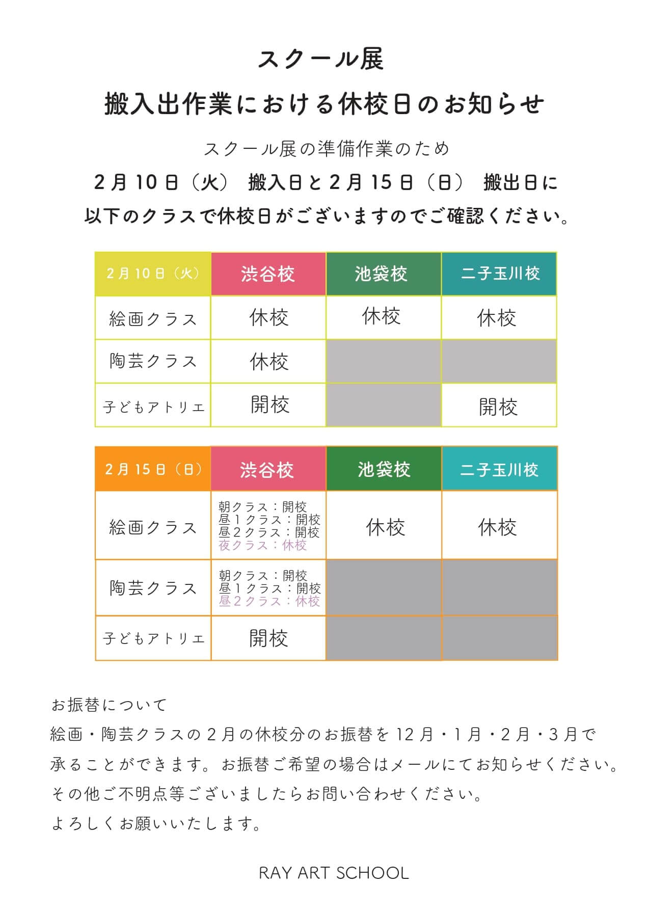 ・2026年2月15日(日) :終日休校