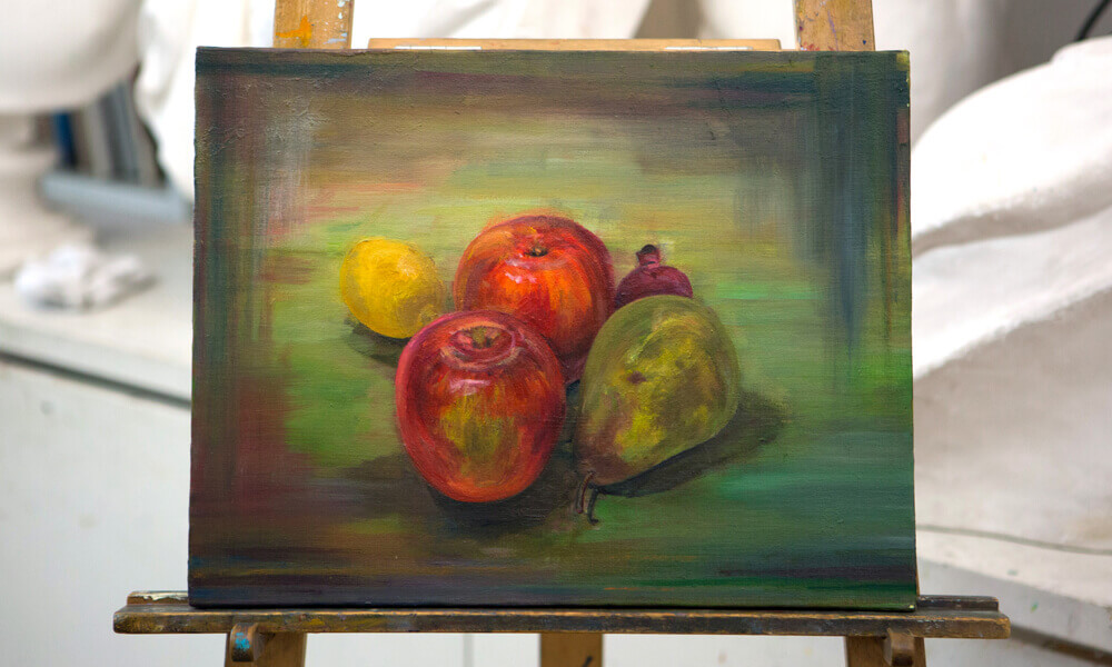 油絵スタートコースは油絵具の使い方から基礎的な技術まで学んでいきます。グラデーションやマチエールの作り方、古典技法の基礎などを学びます。